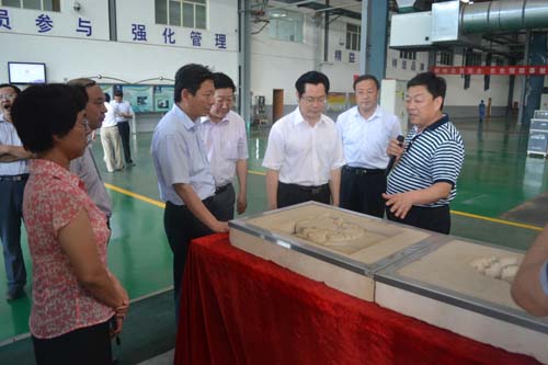 2012年7月10日下午,泰安市副市長(zhǎng)辛顯明帶領(lǐng)市經(jīng)濟(jì)運(yùn)行調(diào)研小組到我公司進(jìn)行考察調(diào)研并進(jìn)行座談,參觀了自動(dòng)化染色生產(chǎn)線及生產(chǎn)車間,詳細(xì)聽取了工作匯報(bào),對(duì)我公司取得的成績(jī)予以肯定,并對(duì)企業(yè)提出的問題現(xiàn)場(chǎng)辦公予以解決。