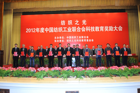 2012年11月29日,“紡織之光”2012年度中國(guó)紡織工業(yè)聯(lián)合會(huì)科技教育獎(jiǎng)勵(lì)大會(huì)在北京人民大會(huì)堂舉行。本次獎(jiǎng)勵(lì)大會(huì)共有受獎(jiǎng)勵(lì)項(xiàng)目171項(xiàng),其中13項(xiàng)成果榮獲科技進(jìn)步一等獎(jiǎng)。集團(tuán)公司項(xiàng)目“筒子紗數(shù)字化自動(dòng)染色成套技術(shù)與裝備”榮獲紡織工業(yè)聯(lián)合會(huì)科技進(jìn)步一等獎(jiǎng)。董事長(zhǎng)陳隊(duì)范上臺(tái)領(lǐng)獎(jiǎng)并作為受獎(jiǎng)企業(yè)唯一代表發(fā)言。王天凱會(huì)長(zhǎng)等協(xié)會(huì)領(lǐng)導(dǎo)對(duì)康平納數(shù)十年來(lái)產(chǎn)業(yè)結(jié)構(gòu)的調(diào)整予以充分肯定,高度評(píng)價(jià)了康平納項(xiàng)目對(duì)推動(dòng)紡織行業(yè)進(jìn)步的巨大作用。