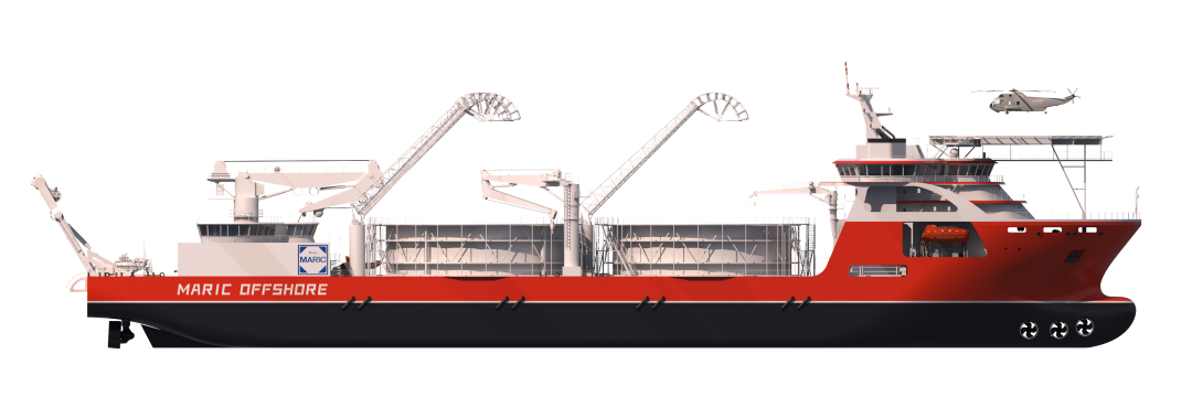 MARIC-CLV 22000海纜施工船采用雙轉(zhuǎn)盤設(shè)計,最大載纜量達(dá)22000噸,最大作業(yè)水深可達(dá)3000米,滿足五級海況下的高效布纜作業(yè)。