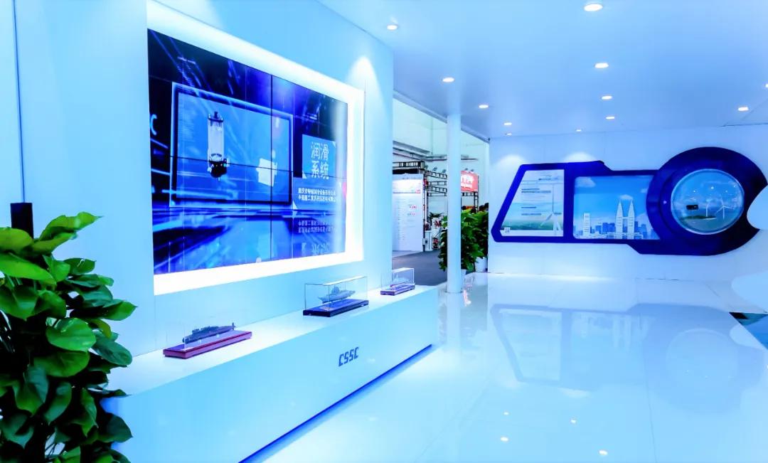 中國船舶集團展臺摒棄了“傳統(tǒng)色彩矩陣”,用“深海藍”加 “風機白”打造出大氣磅礴的開合式復合空間域,細節(jié)上則采用生態(tài)為先、大道至簡、科技為尚三大設計語言,將“風傳送”“海推動”“碳排放”業(yè)務生態(tài)鏈條進行了全方位的解構(gòu),吸引了眾多觀展人士駐足。