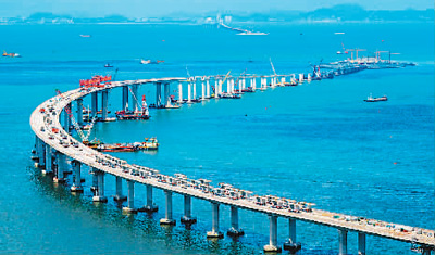 港珠澳大橋主體工程全線貫通,是中國橋梁屹立世界“橋梁之巔”的縮影。世界最長跨海大橋、跨度最大的公鐵兩用橋、首座公鐵兩用跨海大橋……近年來,中國橋梁界為世界橋梁創(chuàng)造了眾多的“世界第一”。數(shù)據(jù)顯示,目前世界排名前10位的跨海長橋中,中國占據(jù)6座。而在建造技術(shù)上,中國已擁有千米級(jí)斜拉橋設(shè)計(jì)施工成套技術(shù)、跨海特大跨徑鋼箱梁懸索橋關(guān)鍵技術(shù)等多項(xiàng)尖端技術(shù)。