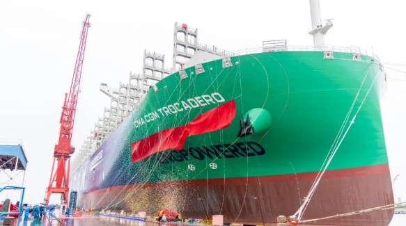 2017年9月,中國船舶集團與法國達飛集團簽署九艘23000TEU超大型集裝箱船建造合同,截至目前,已交付八艘。 該系列船均由中國船舶集團七〇八所自主研發(fā)設計,是首次引入液化天然氣雙燃料系統(tǒng)的超大型集裝箱船。因為它又大又環(huán)保,是名副其實的海上“巨無霸”,我們都叫它“綠巨人”!