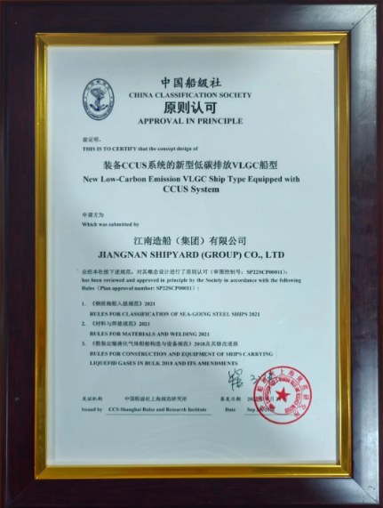 3月21日,中國船舶集團旗下江南造船聯(lián)合七一一所研發(fā)的全球首個配置碳捕捉和存儲系統(tǒng)(CCUS)的超大型液化石油氣運輸船(VLGC)船型方案獲得中國船級社原則性認可(AIP)。