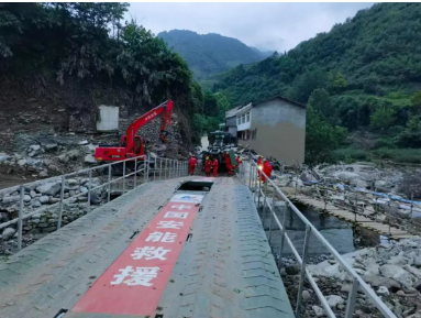 四川省公路交通應(yīng)急裝備物資儲備中心在現(xiàn)場道路損毀處架設(shè)了一座21米應(yīng)急機(jī)械化橋,有效保障救援人員和重型設(shè)備通行。架設(shè)前,中船應(yīng)急和四川省公路交通應(yīng)急裝備物資儲備中心進(jìn)行了工作對接并提供技術(shù)支持。