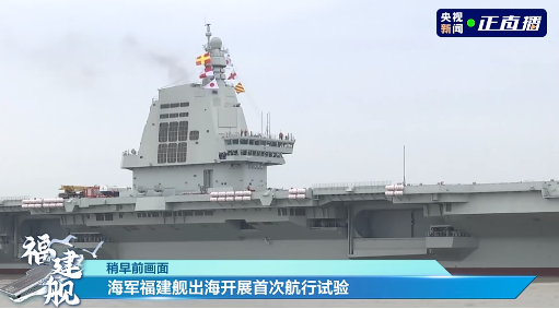 這其實(shí)是我國第三艘航空母艦福建艦2024年5月1日從上海江南造船廠碼頭解纜啟航,赴相關(guān)海域,開展首次航行試驗(yàn)的畫面。