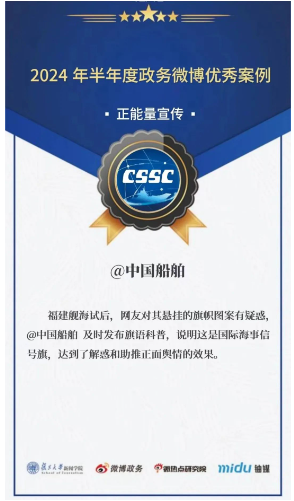 另外,日前2024上半年度政務(wù)微博影響力報(bào)告正式公布,@中國船舶獲評“全國十大國資央企微博”。@中國船舶通過創(chuàng)新傳播形式,讓權(quán)威性信息觸達(dá)民眾,提供高效高質(zhì)的資訊和服務(wù),為助力集團(tuán)公司高質(zhì)量發(fā)展注入動能。