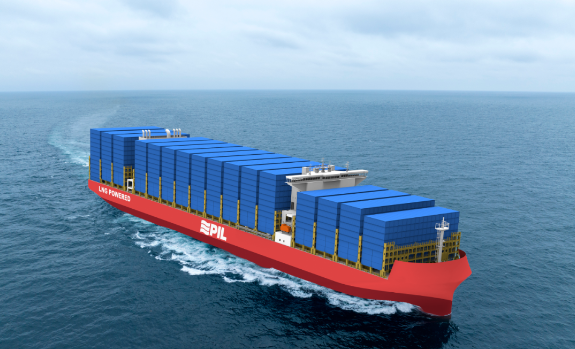 該型船是滬東中華自主研發(fā)設(shè)計、且針對太平船務(wù)運(yùn)營特點(diǎn)特別量身打造的一款綠色環(huán)保型集裝箱船,可裝載1308個冷藏集裝箱。搭載LNG雙燃料動力推進(jìn)系統(tǒng),配備滬東中華自主研發(fā)的7600立方米B型LNG燃料艙,確保在燃?xì)饽J较?3000海里的續(xù)航能力。