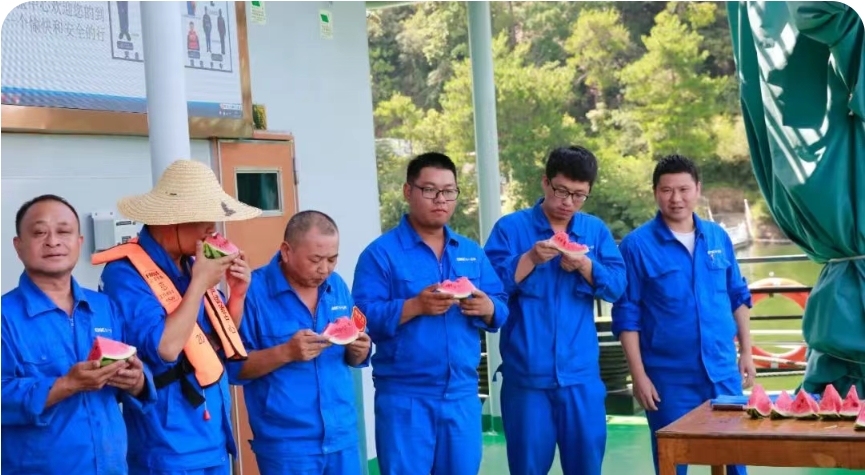7月杭州的氣溫已經(jīng)逼近40℃,千島湖上更是熱浪灼人。試驗(yàn)平臺的“燜爐”和“鐵板”上,不少項(xiàng)目組正在追趕進(jìn)度,大家都是汗如雨下。七一五所黨委為奮戰(zhàn)在科研生產(chǎn)一線的員工送去防暑物資,傳遞對員工的關(guān)懷和鼓勵(lì)。