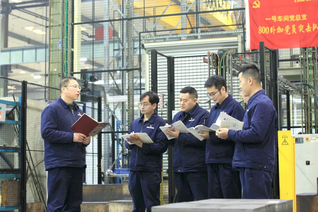 在重慶裝備重慶紅江的車間生產現(xiàn)場,全國人大代表、“中國工人大思政課”講師、中船集團首席技師傅國濤,在班前會上為工友們宣講黨的二十屆四中全會精神,認真學習全會提出的“加快建設制造強國”重要部署,讓黨的二十屆四中全會精神進基層進班組,為企業(yè)高質量發(fā)展貢獻力量。