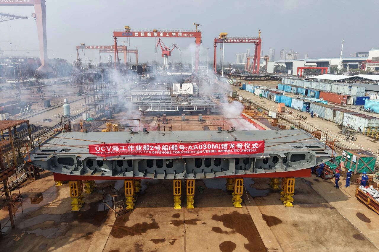 由武昌造船承建的海工作業(yè)船2號(hào)船順利達(dá)成上船臺(tái)節(jié)點(diǎn),正式進(jìn)入船臺(tái)連續(xù)搭載階段。