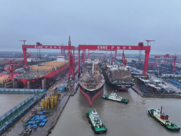 2月27日,大連造船建造的11.5萬噸成品油船65號船和93號船、11.5萬噸原油船11號船、LNG雙燃料動力30.7萬噸原油船113號船共4艘船舶同日開工,以奮斗姿態(tài)全力開啟馬年新征程。