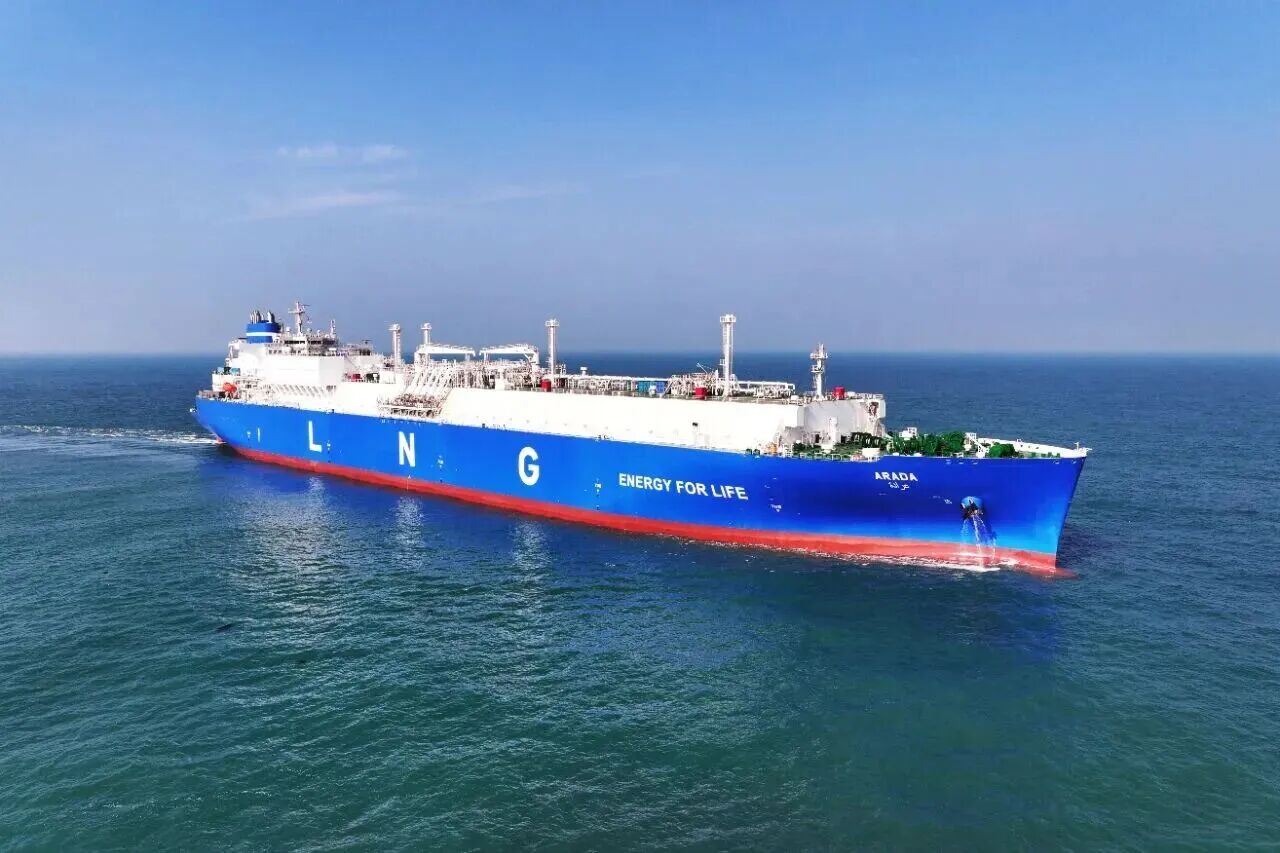 3月23日,中船集團旗下江南造船為阿布扎比國家石油公司(ADNOC)建造的17.5萬立方米Mark Ⅲ Flex薄膜式大型液化天然氣(LNG)運輸船系列船5號船“ARADA”號提前四個月交付。